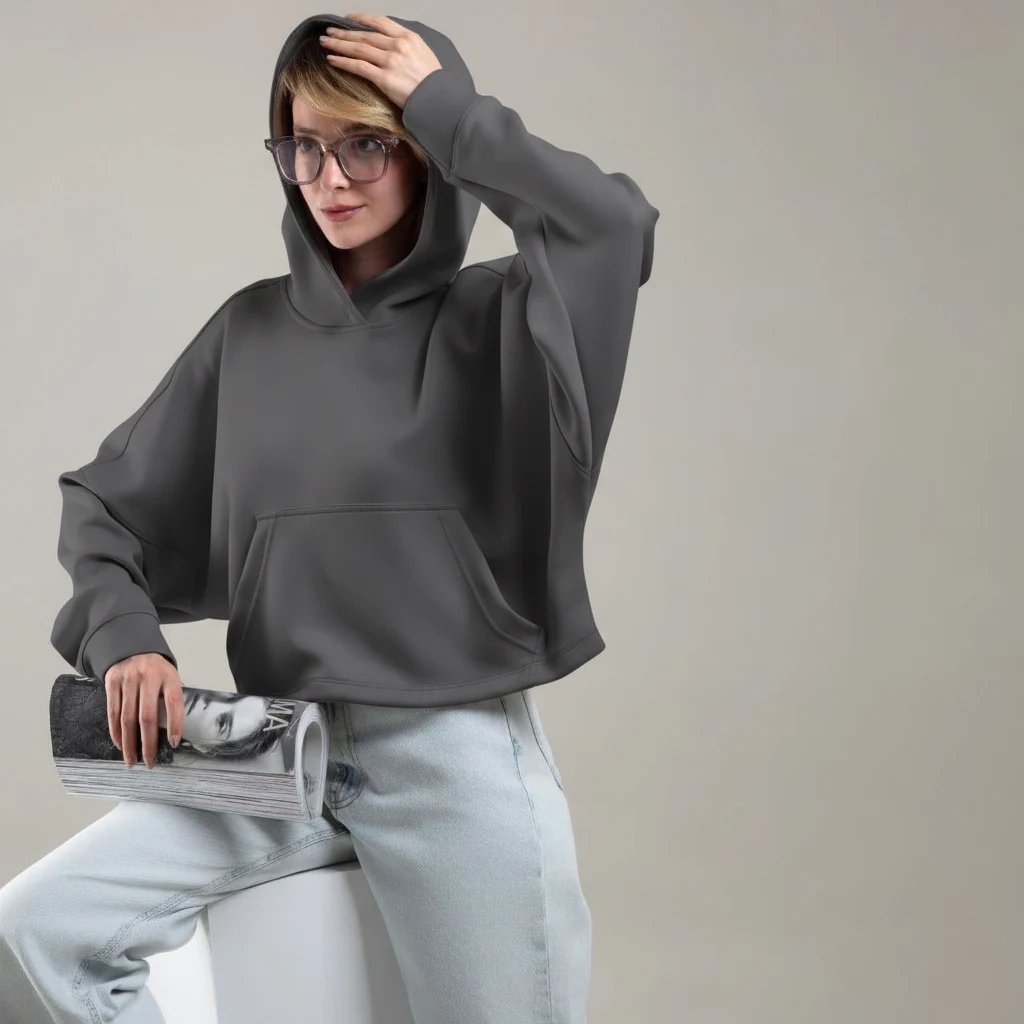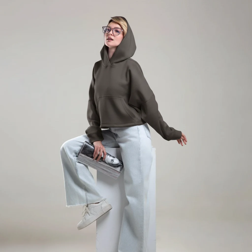 هودی زنانه کراپ بهبود: استایل ترندی با ایستایی عالی (جنس غواصی)