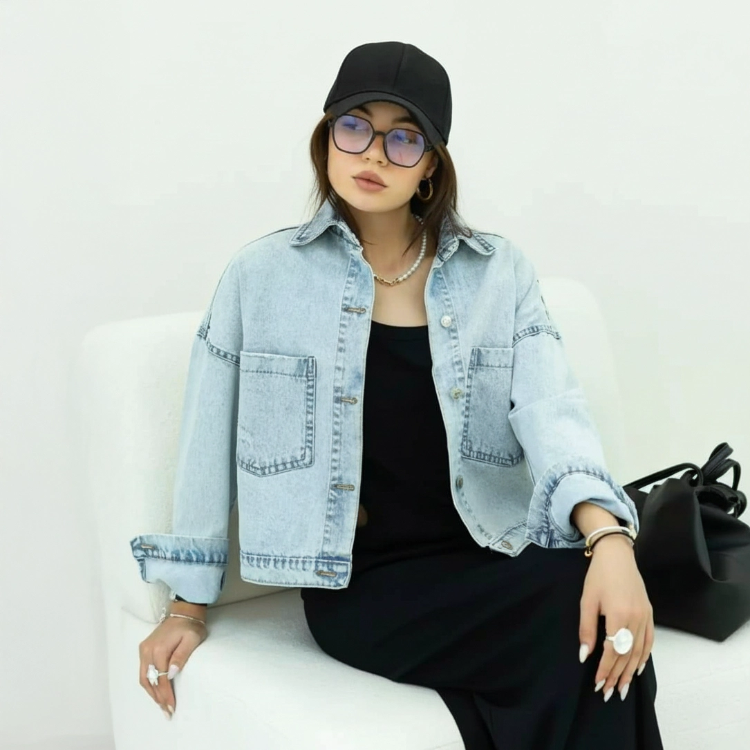 کت جین زنانه نیم‌تنه (Cropped) برند اسکای جین (Sky Jean)، انتخابی ایده‌آل برای خانم‌هایی است که به دنبال استایل فشن، جسورانه و خیابانی هستند. این مدل با دو ویژگی ترندی برجسته شده است: