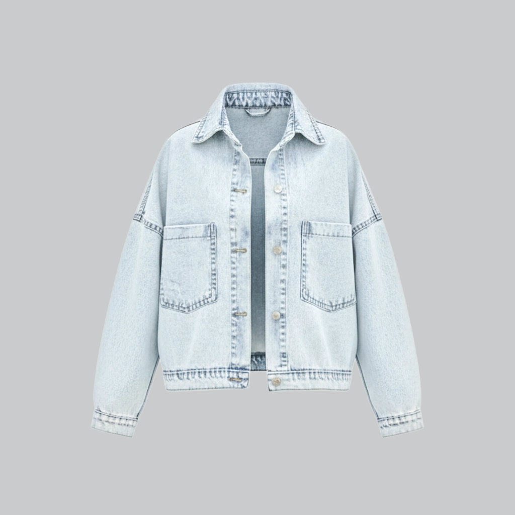 • مدل: نیم‌تنه (Cropped) و زاپ‌دار (Distressed).